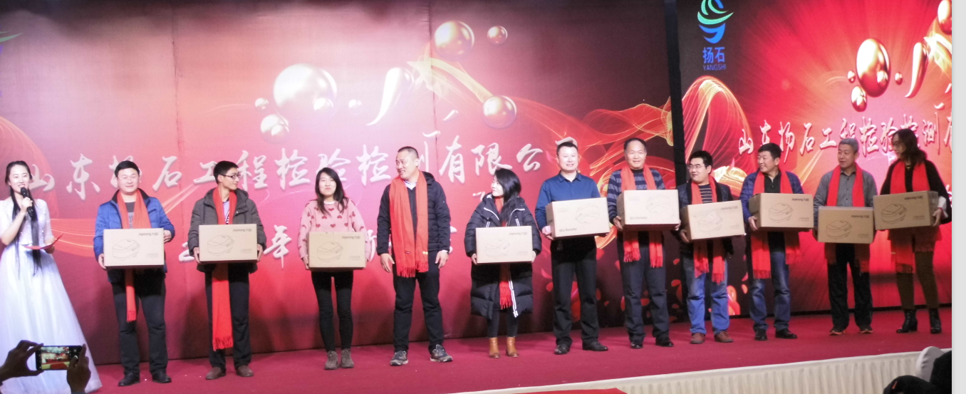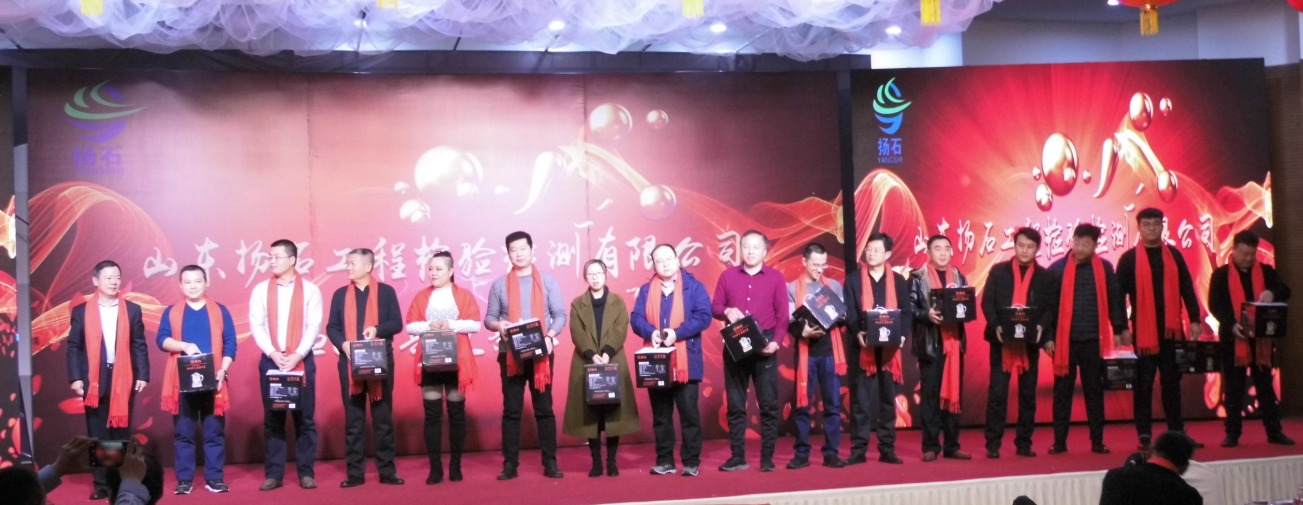 山東揚石工程檢驗檢測有限公司2020喜迎新年既2019年度總結表彰大會(年會)于2020年1月5日中午,在東營市墾利區黃河路22號的墾利賓館隆重開幕,來自省內外兄弟單位、主管部門、協會領導等各行各業的親朋好友在熱烈的氣氛中見證了揚石公司的發展,山東省無損檢測同業會、東營市特種設備協會、東營市質量協會、東營市泰安商會、東營市金盾司法學校、東營市墾利區心途同行公益中心、墾利街道法律服務所、勝利油田勝源實業有限公司、東營市宇佳新材料有限公司、東營沿黃旅游有限公司、同行業機構(無損檢測公司)、業主單位等100多個單位參加了揚石年會。